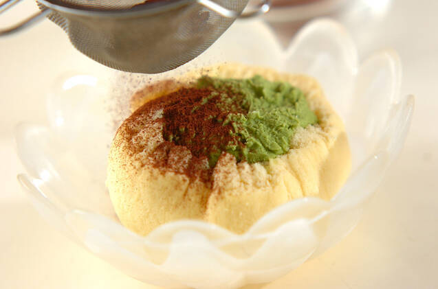 冷凍庫で冷やし固め、器に盛ってココアパウダーを振り、ミントの葉を飾る。(ヒント)調理時間に冷やし固める時間は含みません。