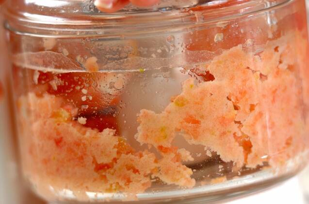 トマトが凍ったら、フードプロセッサーでなめらかになるまでかくはんする。