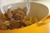 フライパンにサラダ油を弱火で熱し、ニンニク、ショウガ、クミンシードを炒める。香りがたってきたら、玉ネギを加えて炒め、全体に炒められたらニンジンを加え、さらに炒め合わせて煮込み鍋に入れる。