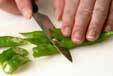 長トウガラシはへたを切り落とし、斜め2~3つに切る。