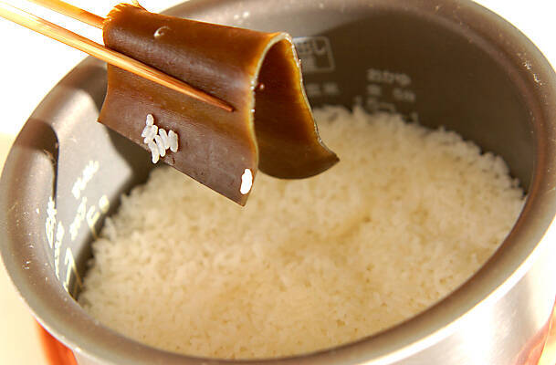 ご飯が炊きあがれば昆布を取り出し、そのまま10~15分蒸らす。
