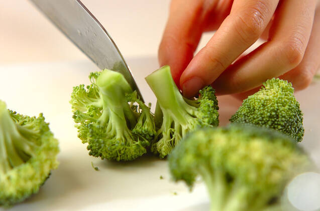 ブロッコリーは小房に分け、熱湯でサッとゆでて水に取り、粗熱が取れたら水気をきる。