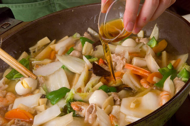 ゴマ油を加え、全体に混ぜ合わせて火を止める。