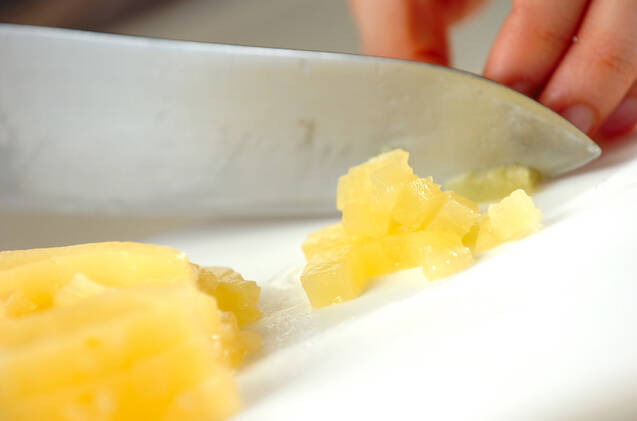 パイナップルは5mm角に切る。