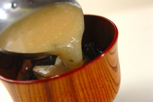 ワカメ、刻みネギを加えてひと混ぜし、器に注ぐ。