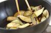フライパンに、サラダ油、ナスを入れて中火で炒める。