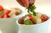 (1)をすべてボウルに入れ、<調味料>の材料をボウルに加え、混ぜ合わせる。よく味がなじむように、冷蔵庫で10分以上冷やしておく。