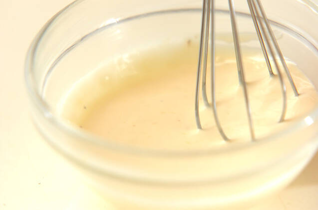 <ドレッシング>の材料を全て混ぜ合わせる。