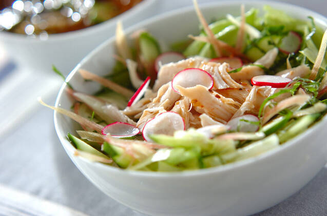 蒸し鶏きゅうりの冷製ごまだれパスタ