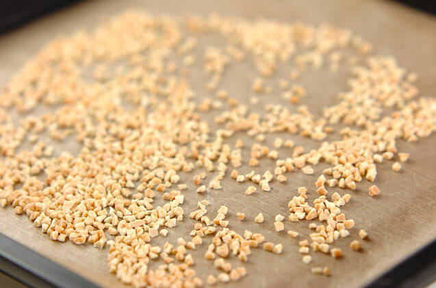 アーモンドダイスを150℃のオーブンで10分程ローストする。