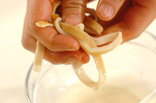 板麩はだし汁をかけて柔らかくもどし、汁気を絞る。