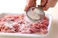鶏肉に薄く小麦粉をからめる。