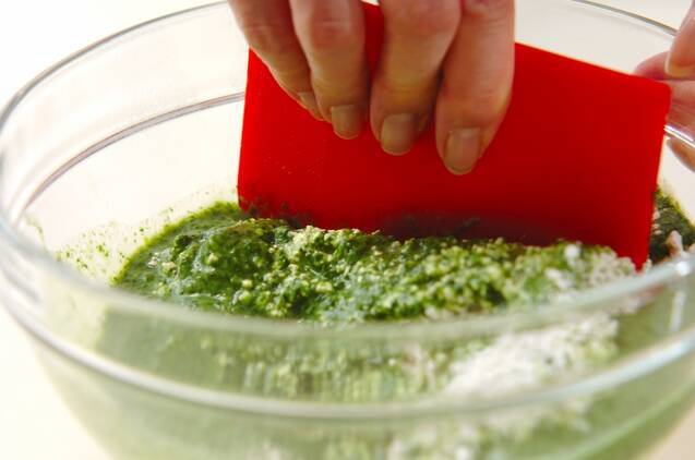 白玉粉に(1)を加えて、カードでひと混ぜする。10分おいて、しっとりさせる。