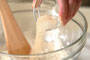 ボウルに強力粉の1/2量とドライイーストを入れて木べらで混ぜ、さらに砂糖と塩を加えて混ぜる。