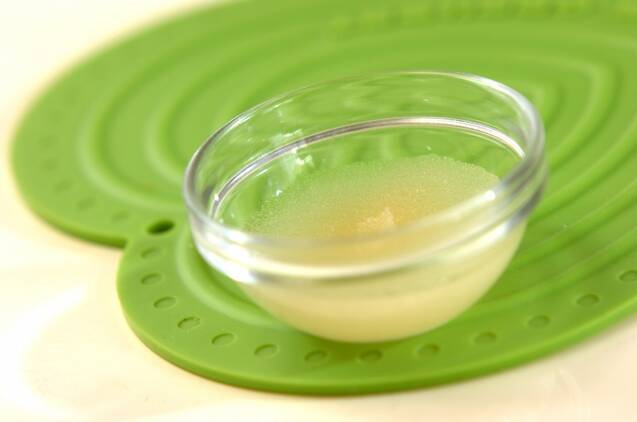 冷水にゼラチンを振り入れて混ぜ、しとらせておく(15分)。