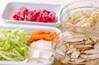 豚細切れ肉が大きい場合は細かく切っておく。
