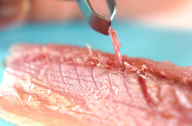サバは小骨を骨抜きで引き抜き、ひとくち大の削ぎ切りにして<下味>の材料をからめて10分置く。