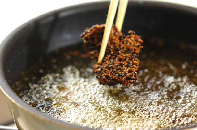 揚げ油にそっと入れ、サクッと揚げて油をきる。