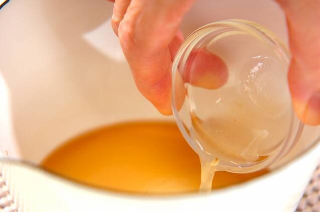 小鍋に<合わせ酢>の材料を入れ、ひと煮たちさせる。冷めたらユズ汁を加える。