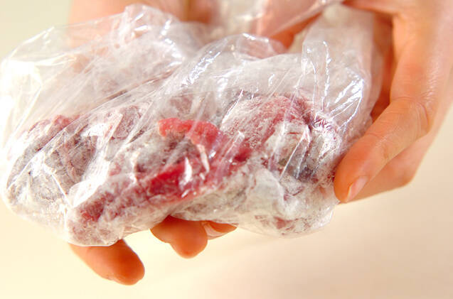牛肉が大きい場合はひとくち大に切り、小麦粉をまぶす。