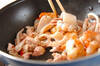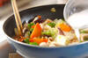 ゴマ油を加え、全体に混ぜ合わせて火を止め、器に盛り分ける。