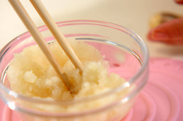 大根おろしはザルに上げて軽く汁気をきり、作り置き甘酢と混ぜ合わせる。