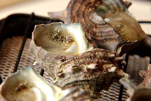 焼き網にサザエをのせ、<合わせダレ>をたらして強火にかける。グツグツ煮えてくれば、しょうゆをたらして火を止める。