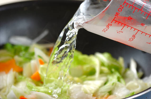 中華鍋にサラダ油大さじ1を強火にかけ、白菜、ニンジン、白ネギを炒め、<スープ>を加えて強火にする。煮立ってきたら水煮タケノコ、キクラゲを加える。