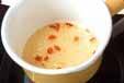 <甘辛いタレ>の赤唐辛子は小さく割り、他の材料と共に小鍋に入れて強火にかけ、煮立てば火を止めて冷ましておく。