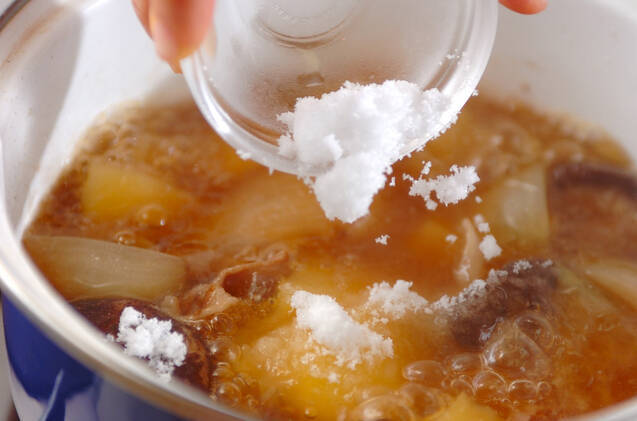 砂糖を加え、蓋をして5分煮る。