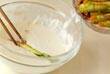 衣の材料をサッと混ぜ合わせる。タラに少量のカレーををまぶし、衣をくぐらせる。