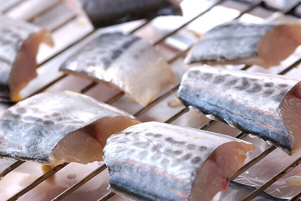 グリルを予熱し、(受け皿に水を張って)焼き網に薄くサラダ油を塗り、盛り付けた時に上になる側から焼けるように並べる。(ここでは上火なので盛り付ける側を上にして並べ)弱めの中火で、こんがり焼き色がつくまで焼き、返して同様に焼き色がつくまで焼く。オーブンで焼く場合は、220℃、10~12分に予熱し、焼き網にサラダ油を塗り、盛り付ける側を上にして並べ、返さずに焼いて下さい。