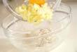 ボウルにそば粉を入れ、熱湯を加え箸でかき混ぜ、つぶしたジャガイモを加えて手で粘りがでるまでこねる。