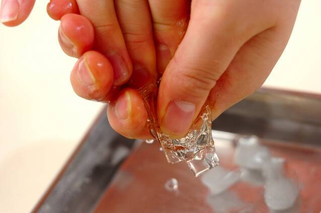 火を止め、ふやかしておいた板ゼラチンを、よく水気を絞って溶かし込む。