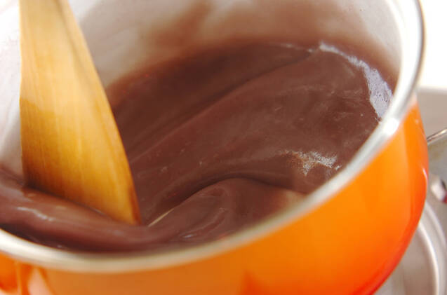トロミがついてきたら火から下ろし、鍋底を氷水にあてて粗熱を取る。