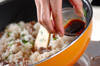 強火にし、ご飯を加えて手早く炒め合わせる。クレソンを加えて混ぜ合わせ、塩コショウで味を調える。