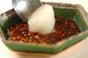 汁気が少なくなってきたら火を止める。大根は皮をむき、すりおろす。