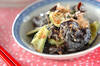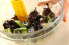 <からしマヨ>のボウルに、キクラゲとキュウリを加えて和える。器に盛り、かつお節をかける。