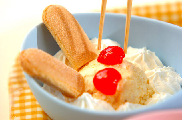 バットに移して冷凍庫に入れ、数回かき混ぜながら冷やしかためる。かたまったら冷やしておいた器に盛り、お好みのトッピングを飾る。