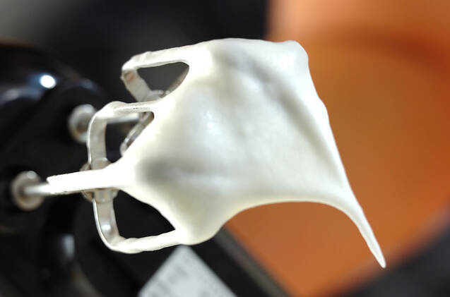 ボウルに<メレンゲ>の卵白を入れてハンドミキサーで泡立て、軽く角が立つようになったら上白糖30gを加えて泡立て、かたいメレンゲを作る。