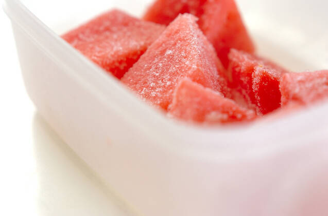 スイカは皮を取り、ひとくち大にきって種を取って冷凍しておく。