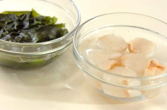麩、ワカメはそれぞれ水で柔らかくもどし、水気を絞る。ワカメが長い場合は、ザク切りにする。