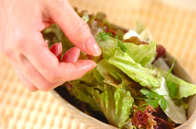 冷やしておいた野菜を盛り合わせ、お好み量のEVオリーブ油、バルサミコ酢、塩コショウをかける。