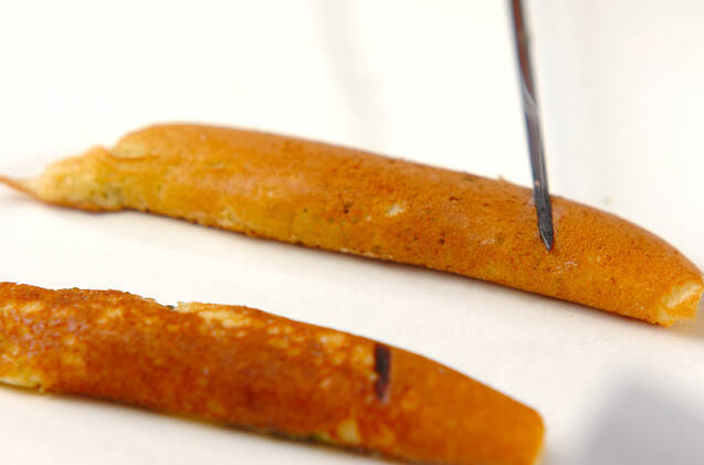 金串を火にかざして熱し、アユの目とエラなどの模様をつける。