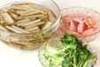 ゴボウはタワシできれいに水洗いし、4cmの長さの細切りにして水に放つ。
