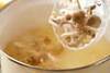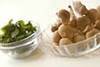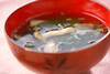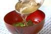 器にワカメとミツバを入れ、熱々の2を注ぐ。