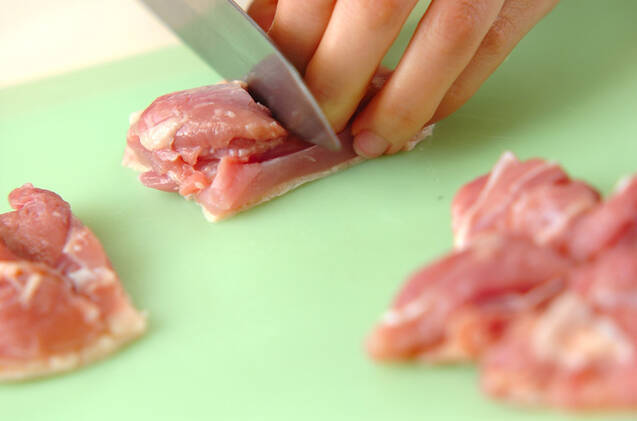 鶏もも肉は8等分に切り、塩コショウを振る。