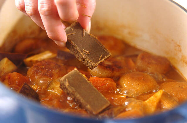 市販のカレールーを加えて煮溶かす。分量外の塩コショウで味を調える。器に炊きたてご飯をよそってカレーをかけ、サヤインゲンを散らす。