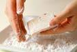 カスタードが軽く凍れば、揚げ油を180℃に予熱する。カスタードを8つに切り分けて片栗粉をしっかりからめ、少し高めの揚げ油(180℃)でサッと揚げ、油をきる。好みで砂糖をかける。
