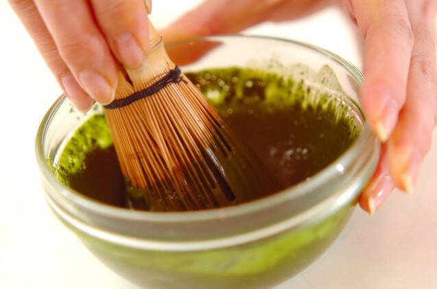 抹茶は分量外の熱湯少量で溶いておく。